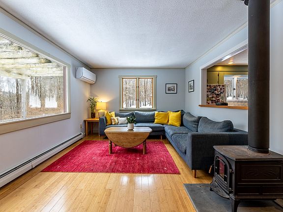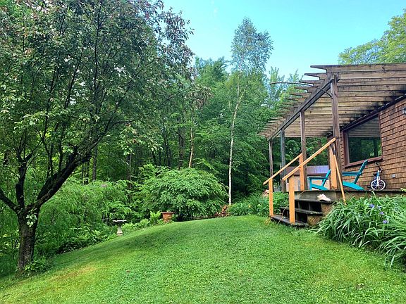 Enjoy all that nature has to offer in this charming one level home on 2 private acres. This gem of a home has everything a small family or retired couple might need. There is a charming kitchen that opens onto a private screen porch for summer evenings. Adjacent to the kitchen you will find a living/dining area with a cozy woodstove. On the same level there are two bedrooms with a full bath. The lower level features a spacious office with egress and and a semi-finished family room and mudroom. The coup de gras is the post and beam garden shed and a separate heated studio building for an office, studio or just use your imagination! Relax on your front porch while enjoying the sounds of a babbling brook. Hiking and ski trails right out your back door. Come and see for yourself!