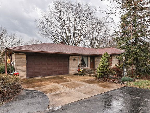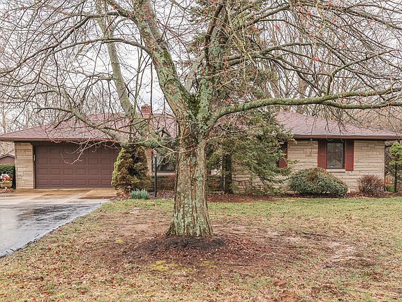 Bedford-Stone RANCH HOME* 3 BEDROOM + 1 FULL BATH* 1512 Sq. Ft. .89 ACRE LOT! Orginal Owner+Well Maintained! 1 Big Mini Barn + Detached Outbuilding (288 SqFt) w/Workshop! Features: Large Circular Asphalt Driveway + Big Front Porch; LIVING ROOM + DINING Area + EAT-IN KITCHEN w/Breakfast Bar & Addt'l Eating Area + Lots of Cabinet & Counter Space + Appliances (Dbl B/I Oven!); DW + microwave doesn't work; Huge SUNROOM to Enjoy; MASTER BEDROOM w/Gas/Wood Fireplace; 2+ Car Finished Garage w/Workbench, Epoxy Floors, & LAUNDRY AREA! (Folding Station & Cabinets!); Big Backyard! Open Patio AND an awesome Covered Patio! Outdoor Fireplace! Great Location! Water Heater '19 + Water Softener