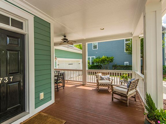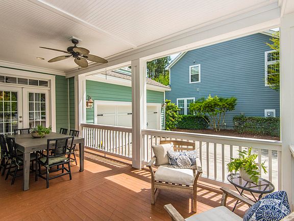 Great opportunity to live in Pembroke in Park West. This home is nestled on one of the best homesites with a large front yard and a back yard that backs to a wooded buffer. You'll love the wide wrap around front porch. Upon entering you'll notice the open floor plan with hardwood flooring throughout the 1st floor. The formal living room is on the left. The dining room has designer lighting and french doors the open to the side front porch with enough space for outdoor dining and entertaining. The eat-in kitchen is open to the family room and features stainless appliances granite countertops upgraded 42'' cabinets a pantry and a large island with plenty of room for barstools. The family room features a fireplace with built-in cabinets and shelving. A private home office is on the main level which would also serve well as a separate den or playroom. A full bath with a tiled shower is located on the main level. The laundry is located conveniently near the garage entrance. A separate staircase leads to a large bonus room. The spacious master suite is upstairs and features a tray ceiling with ceiling fans large windows overlooking the wooded back yard and a large walk-in closet. The master bath offers a dual vanity tiled shower garden tub a separate water closet and ceramic tile flooring. Three additional bathrooms are upstairs as well as a hallway bath with dual a dual vanity and ceramic tile flooring. A linen closet is in the upstairs hallway. Additional upgrades include plantation shutters throughout window casing & crown molding throughout wainscoting in dining room and ceiling fans in all bedrooms. Park West amenities include 2 pools a clubhouse play area six-lighted tennis courts and miles of trails for walking and biking. It is a short trip by bike or golf cart to stores gyms offices restaurants and the highly sought after schools that are located right in Park West. The Mt. Pleasant recreational department and sport fields are conveniently located in the neighborhood for the entire family to enjoy! Only a short drive to the beach and historic Charleston.