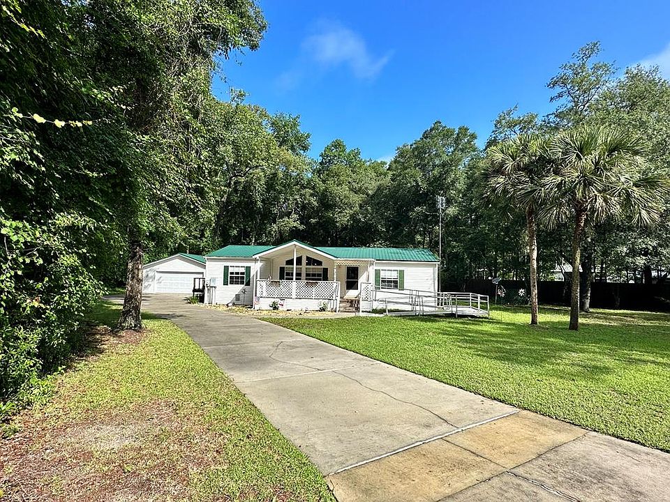 IMMACULATE DWMH located in the gorgeous Silver Oaks community, ALL AGES WELCOME! Very low HOA and a mixture of manufactured homes and new site built homes. This home has been very well taken care of , it is a 3/2 1404 HCSQFT. but feels much much bigger with a nice open flood plan. All new laminate flooring throughout living room and dining room. Each bedroom offers ample size with walk on closets. Kitchen is very spacious loaded with cabinetry, nice laundry room with exit door off back deck. Master bedroom is nice and big, walk in closet and bathroom has a walk in shower and soak tub. Front porch is a dream, perfect for morning coffee or afternoon tea. Nice .57 acre lot located in the culdasec making it feel private. A very nice 2 car detached garage with storage for tools and more. This home has all the perks and is minutes to the Fanning Springs State Park and Suwannee River. Call today for YOUR tour!