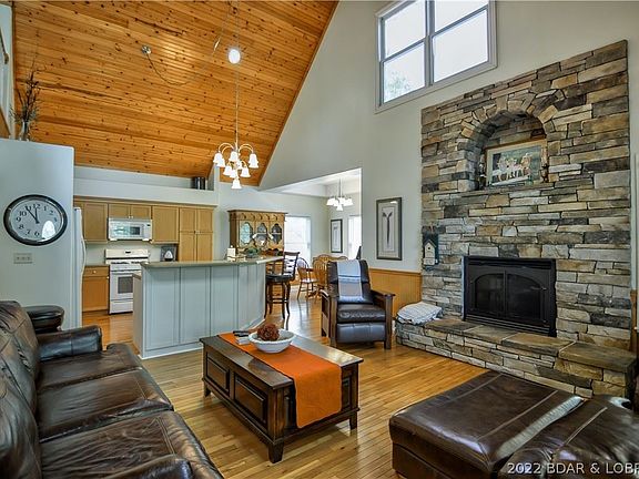 Your country home on up to approximately 7 acres awaits! This charming home with wrap around porch sits nestled in a beautiful farm setting. Enjoy drinking coffee overlooking your stocked 2 acre pond. Property hosts an abundance of wildlife. This well maintained, custom built home has a knotty pine wood vaulted ceiling and main floor living with a large loft overlooking the main floor. Natural lighting brings out the beauty in this open concept home. Loft consists of 3rd bedroom, full bath and sitting area. Fully furnished and ready to move in. Property is fenced and gated. Located in farming community 5 miles east of Preston, MO. Owner built home adjacent to family farm for family vacations. Home used seasonally as a vacation home and Airbnb rental. Located 26 miles from Camdenton, MO and Lake of the Ozarks, 19 miles from Pomme De Terre Lake, and 50 miles from Springfield, MO. Additional acreage maybe available. Contact listing Agent for more information.