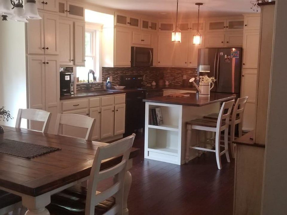 3 bedroom 2 1/2 bath with a bonus 4th room that can be used as an office. 2600sqft on 2 1/2 acres. Recent updates throughout the house to include a full kitchen. Teak butcher block counter tops, and deep single basin kitchen sink. This home boasts water views of the St. Mary's river, a huge yard with 2 mature pear trees and several blackberry bushes, hardscaped fire pit, and playset for the kids. Huge bedrooms and both formal living room and family room. 15 minute drive from gate 2 and on the end of a very quiet road. Will be available Jan 1st. Pets ok with deposit. Pm for more information.