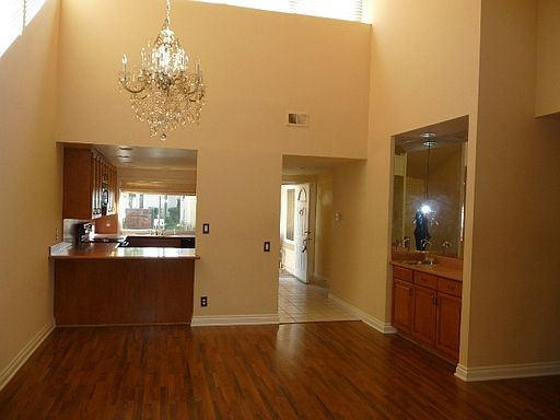 Cozy Single Story 2 Bedroom Condo!Lovely one story attached condo with pergo floors througout. The kitchen is u shaped and the applicances have been updated. The dining room and living room are one large open area with vaulted ceilings. The bedrooms are completely separated by the bathrooms. The property has a private courtyard entrance as well as a large 2 car garage off the front of the property with loads of shelving. The back yard patio is enclosed and is entered from the living room area.