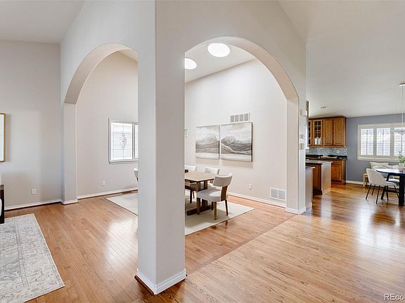 Nestled within the Farm at Arapahoe County community with parks, trails, outdoor swimming pools, and tennis courts, this home offers a perfect blend of timeless elegance and modern comfort. The house features a 3-car garage, providing ample space for vehicles and storage as well as a spacious backyard with a deck that overlooks it. Step through the front door and be greeted with aesthetic arches with the formal dining room and seating area to your left. Rich hardwood floors and tile guide you through the thoughtfully designed layout, leading to a spacious living area bathed in natural light pouring in through large windows and centering a gas fireplace.The heart of the home is the gourmet kitchen, where culinary dreams come to life amidst granite countertops, stainless steel appliances, and ample cabinet space. Gather with loved ones around the breakfast bar or enjoy meals in the adjacent dining area overlooking the verdant backyard oasis. Retreat to the luxurious primary suite, boasting soaring vaulted ceilings and a serene atmosphere with an ensuite bathroom complete with a soaking tub, separate shower, and dual vanities. Three additional bedrooms offer plenty of space for family or guests, each thoughtfully appointed with comfort in mind. Entertainment awaits in the finished basement, where a versatile space awaits your personal touch, whether it be a home theater, game room, or fitness center. With five bathrooms throughout the home, convenience is never compromised, ensuring everyone's needs are met with ease. Outside, discover a truly unique outdoor space, perfect for outdoor dining, relaxation, and recreation. Host gatherings on the expansive patio surrounded by lush landscaping or unwind in the shade of towering trees while the sounds of nature serenade you. NEW ROOF 2024.Located in the award-winning Cherry Creek School District with easy access to shopping, Cherry Creek Reservoir, Trails Rec Center, DTC, DIA, Downtown, C-470, and 5 miles to light rail.