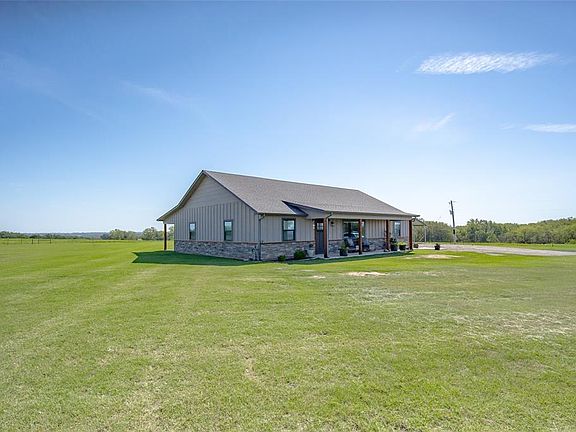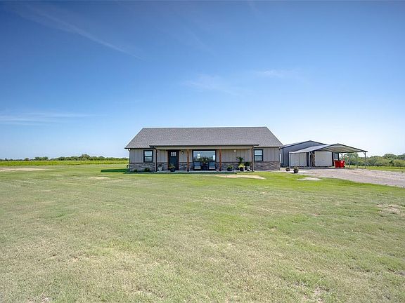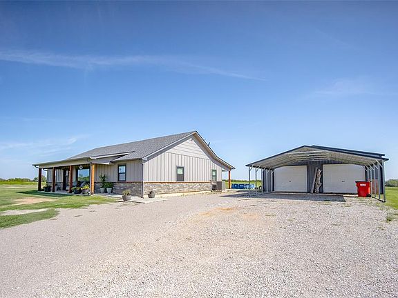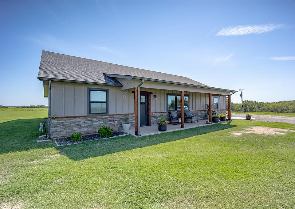 If you are looking for some country peace this property is perfect for you. The exterior property features 2 rolling green acres, a 30x40 shop with two garage doors and carport, front and back porches that run the length of the home perfect for immersing yourself in the scenic views. As soon as you walk into the home you will notice the eye-catching cathedral ceilings with cedar beams and wood look ceramic tile that will last for years to come. The open concept kitchen boasts a large island, granite countertops, ample storage, stainless steel appliances, modern tile backsplash, and two dining areas. The primary suite is complete with en-suite bathroom, walk in closet with backdoor and convenient laundry chute to the laundry room. There are two additional bedrooms. another full bath, and even more storage in the hallway. This property masterfully combines modern farmhouse elegance, functionality, and country charm. Schedule a showing today while you still can!