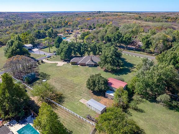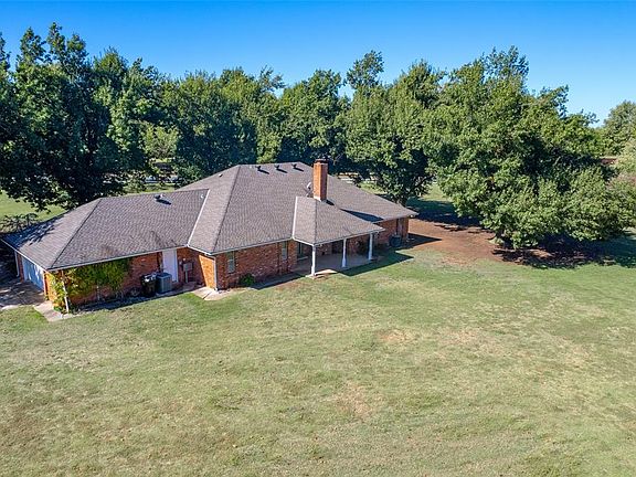 Gorgeous, 4 bedroom home on 2 acres! Could easily use the 4th bedroom as an office or flex room with a built in safe! The kitchen has a butlers pantry, granite counter tops, electric cooktop with built in venting, breakfast bar, and dining area. The master is large with a walk in closet and a door to the outside patio. It has an ensuite bathroom with two vanities & a new large walk in shower. Beautiful wood trim throughout and a woodburning fireplace in the living room. All interior flooring has been professionally cleaned! Exterior features includes a large insulated shop with electric, a large boat storage plus two more outbuildings! Beautiful large lot with tons of mature trees. The neighborhood has a private entrance and a very peaceful feel! You're not going to find this kind of home again! Located just 5 minutes from Norman or I-44 for an easy commute to OKC!