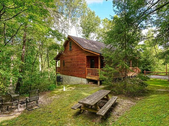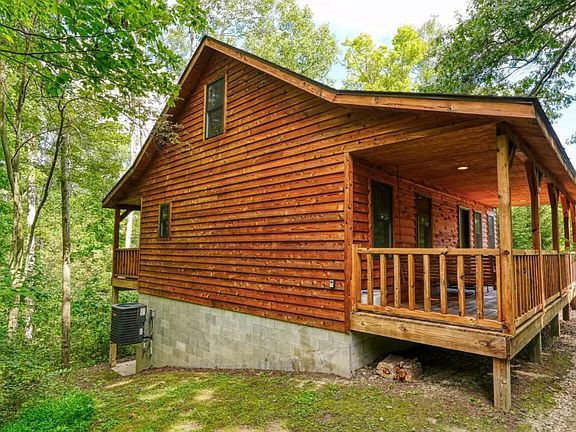 This is a treasure tucked away in lush foliage in the sweet spot of Hocking Hills.  This cute and cuddly cabin sits on a 6-acre tract with a sparkling catch-and-release pond.  This short term rental is fully situated with cabinesque furniture and decor.  The entry level has one bedroom, a full bathroom with tub/shower, a fully equipped kitchen, and a two-story family room with stone fireplace that stretches from floor-to-ceiling.  The loft boasts a beautiful log bed with matching dresser.  Exterior spaces include a firepit, picnic table, porch swing, lower level back patio, and upper level deck with hot tub and grill looking out over a classic Hocking Hills wooded ravine.  Perfectly situation between Logan, OH and hiking attractions. 11 buildable adjoining acres also available for sale.