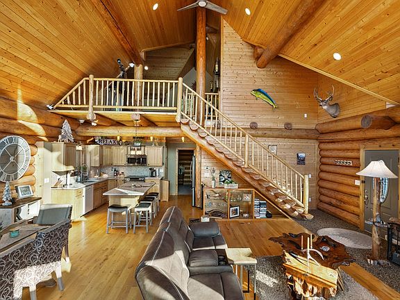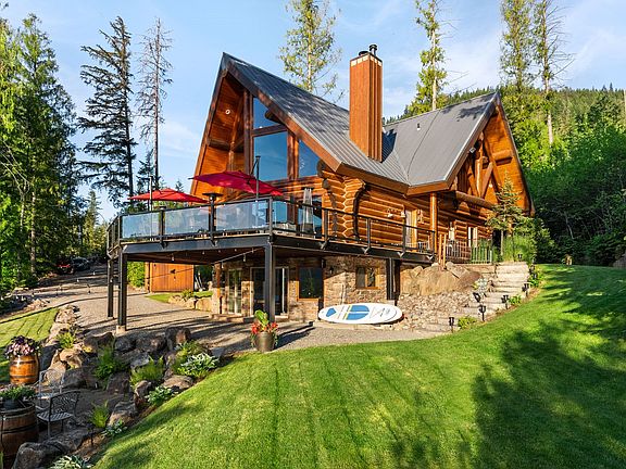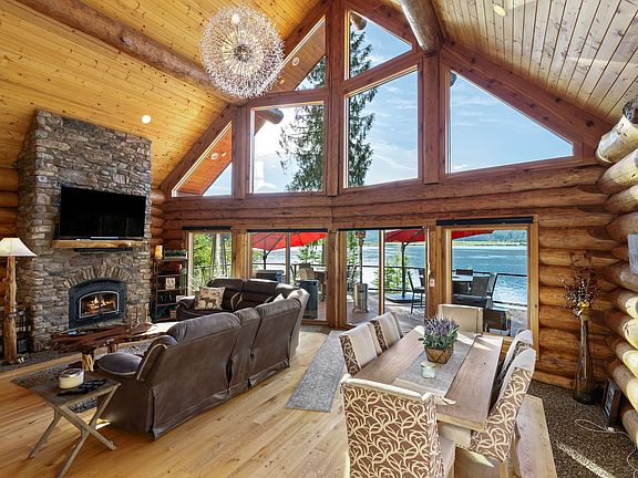 This Luxury Home is Gated, with private access and over 103 feet of sandy beach. Boasting over 3,000 sq ft of custom hand scraped western larch (tamarack) logs. Massive deck with breathtaking views of the Lake and Mt. Spokane. Adjacent to hundreds of acres Inland Empire Paper Company, with endless trails for Hiking, Horseback Riding, Motorcycle/TV riding, Hunting and more! Sleeps 10, with 3 bathrooms, 3 bedrooms (optional 4th). Soaring ceilings, huge windows, updated kitchen, walk-out basement, stone fireplace and woodstove. Enjoy fun days on the water or evenings in the hot tub, firepit, or playing games in the full walk-out basement. Pristine landscaped yard just steps to the private beach, large dock, and amazing fishing!