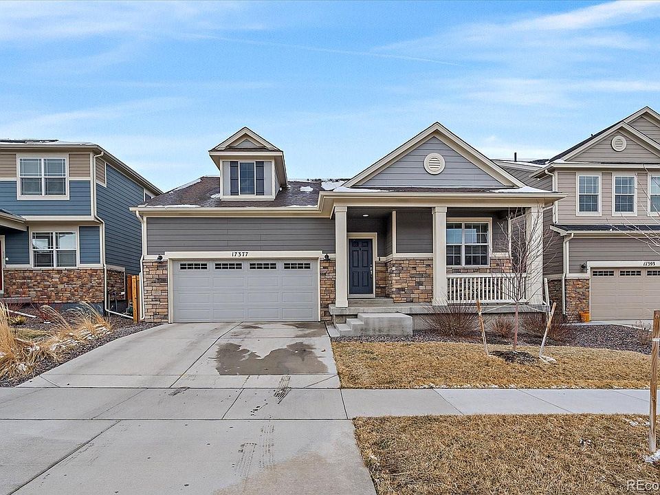 Gorgeous ranch home featuring open floor plan, high ceilings, and luxury vinyl plank flooring. The kitchen features 42' gray cabinets, granite counters, stainless steel Whirlpool appliances, center island with eating bar and corner pantry. The adjoining great room is so spacious with plenty of room for all your furniture. The flex room is perfect for the work at home executive or for whatever you need. The primary suite is situated for privacy and has large windows, bath with large shower, double sinks, tile floor, quartz counter and large walk in closet. The secondary bedrooms are both a great size and have a hall bath with tub and shower and features quartz counter and tile floor. Laundry is conveniently located off the garage with washer and dryer included. Bonus - garage is drywalled. The basement is a great size and is ready for future expansion. Ir is plumbed for a bath too. Other amenities include black contemporary lighting, ceiling fans, tankless water heater, water softener, humidifier, water purifier, and a/c. Enjoy the outdoors on either your front porch or covered patio out back. The yard is fully fenced and awaiting your inspiration. This home is close to town and all the amenities Parker has to offer plus shopping and dining.