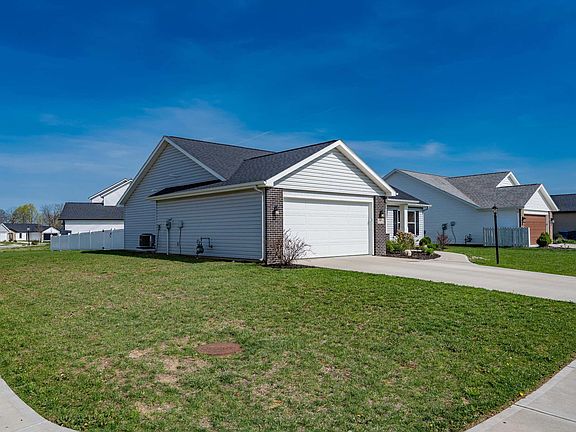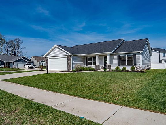 Welcome to this Brownstone Manor ranch-style home in the heart of Huntertown—offering small-town charm with the sophistication today's buyers expect. Perfectly positioned in the highly sought-after Northwest Allen County School District, this 3-bedroom, 2-bath residence features soaring ceilings and an open-concept layout. The spacious kitchen boasts a central island and updated lighting, blending function and style. Enjoy newer luxury vinyl plank flooring in two of the bedrooms, and retreat to a quiet, fenced backyard ready for gardening, play, or private relaxation. Unwind on the classic front porch or take a short walk or bike ride into town for a scoop of ice cream or a game of pinball. With wide sidewalks and a welcoming community feel, this location offers both tranquility and convenience. Built by trusted local builder Granite Ridge Homes, this property also includes a two-car garage—perfect for vehicles, hobbies, or storage.