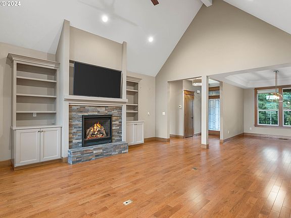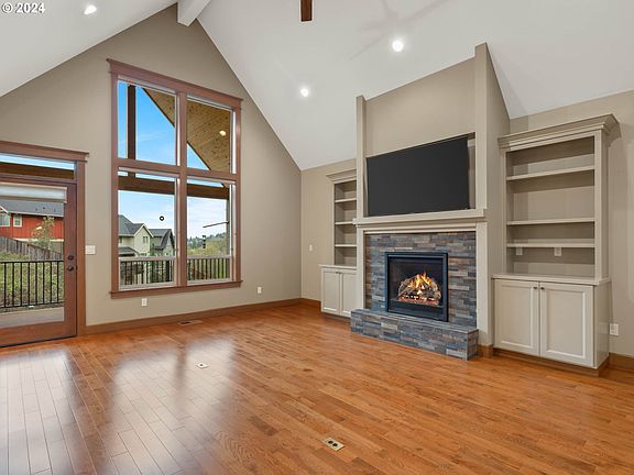 This almost new, custom-built home has high-end Bosch and Asko appliances in the stunning kitchen, which boasts dual sinks, an expansive granite island that opens to the vaulted greatroom with forest and distance city light views. Well-designed main-level living floorplan with a luxurious primary suite that has dual vanities and a jacuzzi tub. There is a bonus room above the garage that is perfect for all your hobbies or an extension of the living space from the main level. In addition to a tankless water heater you will find a central vacuum system, EV-car chargers, engineered wood floors, custom cabinets and high-quality plumbing fixtures. The home has a wonderful covered trex deck to take in the views and is ideal for entertaining. You will find great spacing between the neighbors, an irrigation system in the front and back, plus landscape lighting, beautiful paver driveway and walkways. There is a large lower garage space for a vehicle and/or shop space that includes ultra-bright LED lighting plus built in cabinets in both garages and easy access to expansive storage under the home. You can't beat the end-of-the-road location in a desirable Cooper Mountain neighborhood.