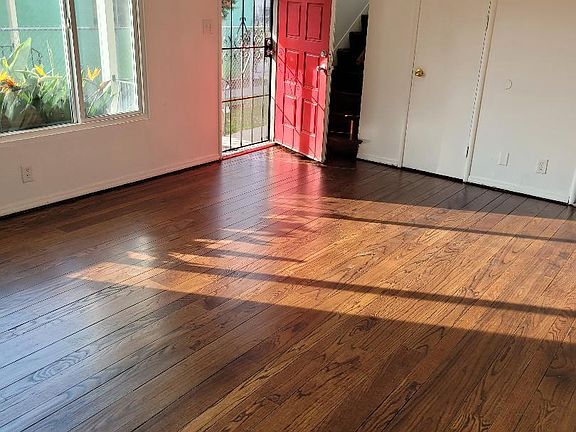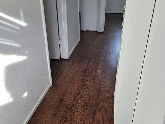 Large 3 bedroom apartment. Flooring completed with NEW Hardwood thru out the unit. Picture shows carpet no carpet. NEW Harwood flooring thru out the unit. Kitchen large with granite counter top, including stove, refrigerator, and title flooring with NEW cabinets. This duplex is secured with fence area with a shared backyard. Garage and off street parking. Lovely and quiet surroundings. Owner pay for water. Renter responsible for gas and electric. Last month's rent due on signing. No washer hook-up. No smoking, and pets allowed.