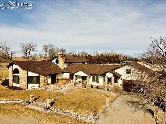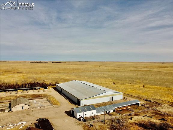 A 10,681 acre all contiguous ranch with 7,779 deeded acres and 2,902 leased acres including a 960 acre Colorado state school lease and a 1,942 acre private lease. All upland range is short grass prairie. The owner rates the carrying capacity at 400 cow calf pairs year around. With 10,681 total acres total, the ranch is optimally fenced and extremely well watered for extremely efficient operations. The ranch has 160 acres of dry land hay ground and 68 acres of irrigated under two pivots. The gorgeous sprawling main home boasts 4,762 square feet of living area and includes 4 bedrooms, 3 full baths, a bonus room and a wonderfully appointed living area with dramatic stone appointments. The home features a huge master suite with a fireplace, sitting area and attached master bath. The country kitchen features Spanish tile, and wood accents and beams. 150 ft x 360 ft indoor roping arena, complete with roping boxes, roping chute and alley, 2nd story birds nest observation area and a well appointed 2nd level apartment. This arena isn't your run of the mill indoor barn, but a commercial quality facility built by world champion barrel racer and gold medalist Marlene Eddelman McRae and her husband, former PRCA calf roper Doug McRae. Other Improvements: 6 stall horse barn with tack room, turnouts and wash rack Open 200X20 loafing shed with 10 runs used in the past for horse runs, now used for equipment storage Shop with overhead door Calving barn and pens 3 bed mobile home Loafing sheds in the Bull pasture Airplane hanger and runway Numerous solar wells, electric wells and windmills and a pipeline system Excellent fencing and cross fencing that works incredibly well for cattle rotation Several sets of corrals and pens Two pivot irrigation sprinklers Two grain bins Several stock sheds several stock dams See website for additional descriptions.
