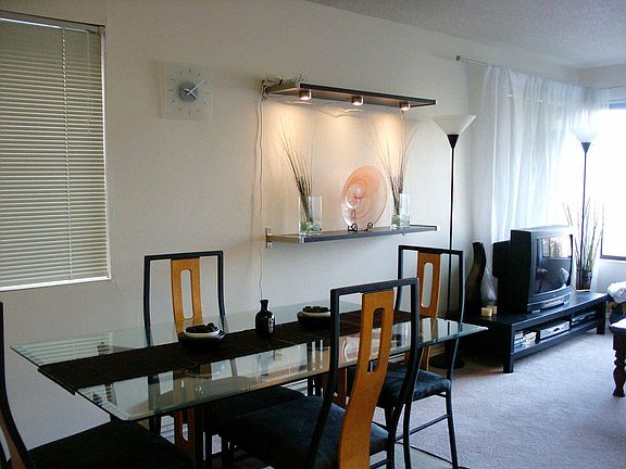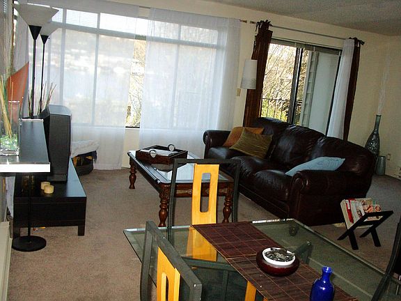 This apartment is in the Dexter Terrace, which is an 8 unit, contemporary design building situated on the side of the hill above Lake Union. It is in the lower Queen Anne/Westlake neighborhood, about 9 blocks north of the south end of the lake and less than 2 miles from the center of the downtown business district. There are only two apartments on each floor of this building, so this is a corner unit with no shared walls except for a short section on one side of the living room. It is located on the second floor which is actually one flight below the Dexter Ave street level because of the way the building is situated on the side of the hill. The unit is oriented toward the lake. There is a 100 foot green belt immediately outside the living room windows giving the apartment a relatively private feeling considering its in-city location. Beyond the green belt there are beautiful day and night views of Lake Union, Capitol Hill, and the Cascade Mountains. The apartment is approximately 920 square feet. In addition to the two bedrooms and 1.5 baths, it has a large living room with lots of windows and natural light, a dining room, a view deck, and plenty of closets. Appliances include a dishwasher, and there are laundry facilities (only 50 cents!) on the same floor. The address is 1738 Dexter Avenue North, which is about halfway between south Lake Union and Fremont. The apartment will be available May 4th. A twelve month lease is required. The rent is $1950 and the deposit is $650, $125 of which is nonrefundable. The rent includes water, sewer and garbage, but not electricity. There is a free storage locker and one free, reserved parking spot. (Some restrictions on Mondays.) Cats with good references accepted on a case by case basis. Sorry, no dogs. No Smoking. Renter's insurance is required. The building is owner managed. Please call show contact info for additional information or to arrange a viewing. Telephone calls are much preferred over the "I'd like a tour" button. 206-281-9890. If you leave a voicemail, I can often return calls within an hour. Note: The attached pictures are of a similar unit with the same floor plan and comparable finishes. The person who lived there at the time was a professional decorator. The curtains belonged to the tenant. The apartment comes with miniblinds. The view pictures are from the living room and the deck of the exact apartment to be rented. Key words: view, Amazon, Gates Foundation, Tableau, Facebook, Google, Fremont, downtown, MOHI, SLU, greenbelt, South Lake Union.