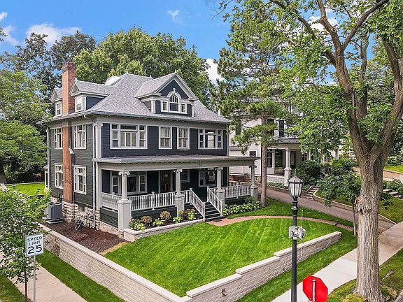 Step into this stunning, 1908, Edwardian styled home with 3+ bedrooms, 3 bath home with 3 car attached garage in beautiful Lowry Hill. You are greeted by gorgeous natural light-filled rooms adorned with high ceilings, curved leaded glass windows on the front porch, and original woodwork. The kitchen has been completely renovated with brand new cabinets, hardwood flooring, quartz countertops, and dishwasher. Enjoy gourmet, commercial grade SS gas stove with double electric oven and refrigerator. The main floor 1/2 bath and the 2nd floor full bath have been tastefully remodeled. The bathroom on the 3rd floor is brand new. There is a potential 4th bath with plumbing in the basement. The original hardwood floors have been refinished throughout. The third floor is spectacular with a versatile 4th bedroom or flex room bathed in sunlight from windows on three sides and two phenomenal new custom skylights. Step into the solarium with Tiffany stained glass doors and new LVP flooring to enjoy the private, peaceful backyard. This historic beauty has been updated with so many modern conveniences, including: newly installed forced air AC and gas heat with energy efficient heat pump, new ductwork, roof, plumbing, landscaping with smart sprinkler system, and electrical. Located just blocks from everything Mpls has to offer with close proximity to Lake of the Isles, many parks including Kenwood Park and Thomas Lowry Park, Parade Stadium and Ice Garden, restaurants, and shopping with easy access to highways 394, 100 and 94.