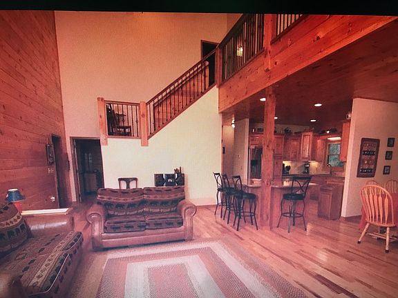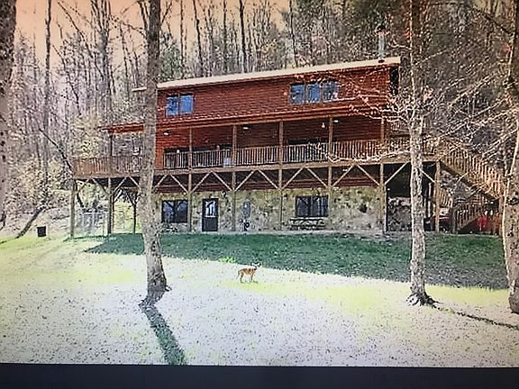Welcome Home! This Amazing UNRESTRICTED CREEKFRONT Property has it all! 44 acres with a huge pasture area with power, and mountain land with a gravel road, trails, and many home sites. Over 1000 combined ft on both sides of Hothouse Creek with a bridge and firepit. A meticulously maintained, 3 bed, 3.5 bath Cabin with a main level consisting of a large living area with high vaulted ceilings, a big kitchen with Granite counters, an Island and stainless-steel appliances, a huge master bedroom with high vaulted ceilings and a nice master bath with jetted tub and master closet, a wraparound porch with 4 entry points, a 1/2 bath and a laundry/mudroom. the upper floor has 2 beds, a full bath, and sitting area with a walkout porch. The lower level has a living area, office, a bath, and a porch. Pictures don't do justice to this MUST SEE property!