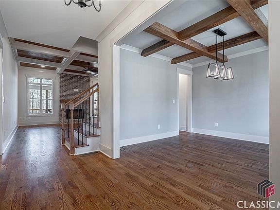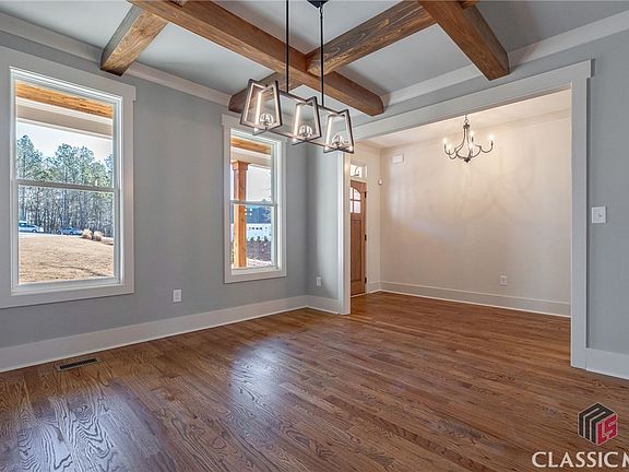 Step into the allure of modern farmhouse living with this stunning Frank Betz Kensley Downs Plan. Fully completed and ready to welcome you home, this residence perfectly embodies the farmhouse style, offering a harmonious blend of charm and modern convenience, including newly available cable fiber internet for seamless connectivity. The facade of the home features multiple materials and an inviting front porch, setting the tone for the warm and welcoming atmosphere within. The main level is designed for today's lifestyle, with a family room taking center stage, featuring a tongue and groove coffered ceiling and a fireplace as its focal point. The kitchen, truly the heart of the home, boasts a spacious island ideal for entertaining. A cozy keeping room with its own fireplace and built-in cabinetry provides a warm retreat within the home. The luxurious master suite, located on the main level, opens to a vaulted covered deck—a private haven for relaxation. The master bath is a sanctuary, thoughtfully equipped with everything you need to unwind after a long day. Outdoors, you’ll find additional living spaces, including a large covered porch and a grilling patio, seamlessly blending indoor and outdoor living. The upper floor offers three bedrooms with generous closets and well-appointed baths, ensuring comfort for everyone. The finished basement is a standout feature, offering a spacious living area, an additional bedroom, and a full bath. It also includes abundant storage, making it as functional as it is beautiful. Set on an expansive 8.889-acre canvas, this home delivers modern farmhouse charm, thoughtful design, and abundant space to enjoy life inside and out, all with the added benefit of high-speed cable fiber internet to keep you connected. Schedule your private tour today and discover the perfect blend of style, comfort, and serenity!