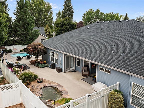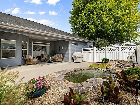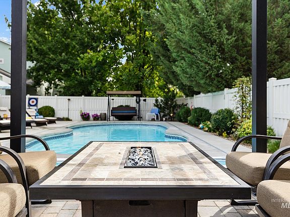 Welcome to the happiest home on the block! Entertain with ease—indoors & out—with gas-heated saltwater pool & automated cover. A dreamy east-facing backyard includes patio space galore, a tranquil fountain & pond, & firepit area. This single-level stunner boasts vaulted ceilings & a sunlit, flowing layout. Each bedroom has its own walk-in closet & dedicated bath, while the primary suite offers French doors to patio, dual vanities, soaking tub & roomy walk-in. Flexible plan includes a cheery office with wall-to-wall built-ins, 2 dining spaces, & an open living area w/gas fireplace, flowing to an updated kitchen with granite-covered breakfast bar, pantry & stainless appliances. Fridge, washer, dryer & clever Murphy bed, adding flex space, are all included. Enjoy a 3-car garage, newer mechanics in this perfectly positioned home, nestled on a corner lot near great schools, parks, shopping & golf cart access to Lakeview. This one-owner retreat offers the ideal blend of leisure & location