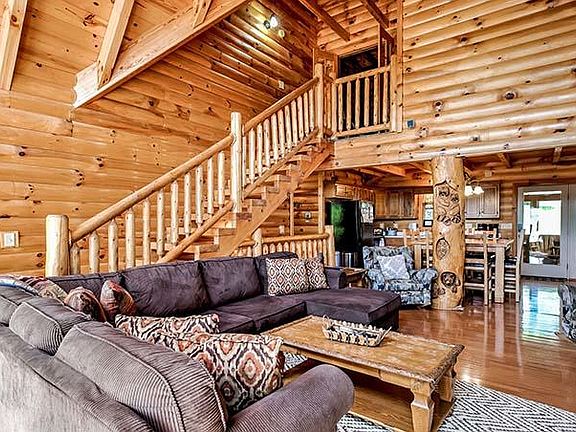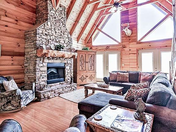 This cabin is the perfect getaway and/or rental property.3500 sq ft with 5 large bedrooms and 5 baths.This lake view comes with a boat slip.The main level has a large living area, 2 story stacked stone gas fireplace with plenty of room for everyone to gather. Two patio doors open up to a large balcony. The fully equipped kitchen adjoins the living area, with table seating for 8 people and a bar that seats 4. The screened porch is right off the kitchen for additional dining..The lower level has a large game room, laundry room and additional bedrooms. Boat slip at Twin Cove included (monthly fee).Currently booked rental must be honored with purchase.
