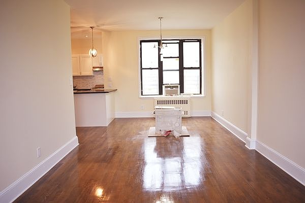 This gut renovated bright airy 2br has dark oak hardwood floors through out the unit. The large living room has north and south exposure allowing light to pour in. The living room can fit a full living room set and and 6 person dinning room table along with other furniture. The kitchen has Cesar stone counter tops, stainless steel appliances including dish wash washer and microwave oven and dishwasher. The kitchen also has a breakfast bar as well. The bedrooms can both fit queen size beds and have large closets . There is washer dryer in the unit as well