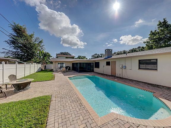 Welcome home! This 4 bedroom 3 bath pool home is situated on a ¼-acre lot in the areas of Plumb Elementary, Oak Grove Middle and Clearwater High School. A split floor plan with large bedrooms all on one level. Beautifully renovated baths with quartz counters. Attractive, newer, vinyl plank flooring throughout. Gorgeous newer kitchen with granite countertops and stainless steel appliances with tons of cabinet space along with updated ceiling fans and baseboards throughout. Vinyl fenced back yard to keep your pets safe and provide privacy for the pool. Covered, screened patio with sliders to the dining area. New roof (2019) Newer AC (2019), exterior and interior painted in 2019. Wood burning fireplace for your cozy evenings in the Great Room. An attached double car garage with door opener. Recently replaced shingle and flat roof. No Flood Insurance, No HOA or CDD fees required. This home is super clean and move in ready. Easy walk or bike ride to Eagle Lake Park. A quick commute to Tampa International Airport, access to down town Tampa, St Petersburg and the World famous Clearwater Beach