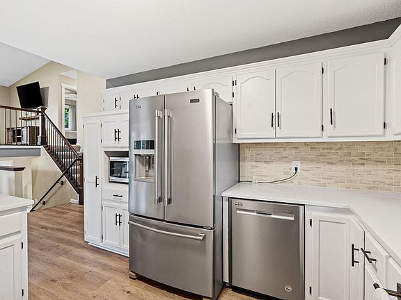 Welcome to this spacious and beautifully maintained 4-level split in sought-after Lakeville North schools! With thoughtful updates and a flexible floor plan, this home is move-in ready and offers room to grow. The welcoming front porch sets the tone as you step inside to an updated kitchen with new countertops and flooring (2023), and a bright dining space that walks out to the deck—perfect for summer dinners outdoors. Upstairs, the sun-filled living room adds warmth and charm with new flooring (2021). On this level you’ll also find the primary bedroom with a walk-through bath (with new flooring in 2023) and a second bedroom. The lower level features a cozy family room with a fireplace, a walk-out to the patio, two additional bedrooms, and a ¾ bath—great for guests or extra living space. The 4th-level basement offers a huge storage area or the opportunity to finish and create even more living space. A large insulated and heated 2-car garage adds everyday convenience. A new roof (2023) gives you additional peace of mind. All this in a prime location near shopping, restaurants, and quick access to I-35W. Make sure to check out the virtual tour video, and don’t miss your chance to make this Lakeville gem your next home!
