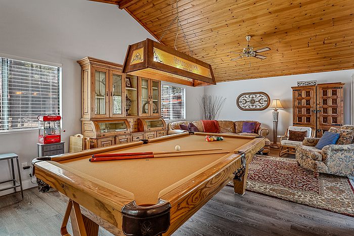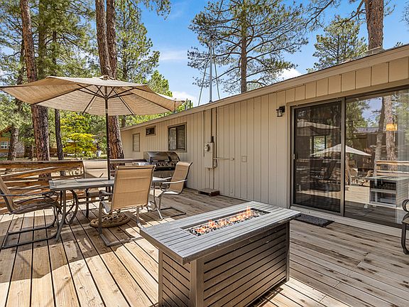 This property is a corporate rental. Please note that the monthly rental price for this property is dynamic and subject to seasonal adjustments. For an accurate quote, provide us with your intended move-in and move-out dates. The LodgePole Cabin in the Pines is tucked onto a quiet street in the \"Hidden Gem\" community of Munds Park, yet just a 25 minute drive from Flagstaff. This home offers mountain country living with a large treed lot and charming comfort. Everyone will enjoy the pool/game room off the living room! This is a residential neighborhood. We ask that all groups respect the nature of our quiet neighborhood. This is a single level three bedroom home. The primary bedroom has an ensuite bathroom. You\'ll find a flat screen Smart TV in the living room and in the sitting room. Both TV\'s are equipped with basic cable while also allowing you to stream from your favorite platforms! Both rooms have a number of seating options for when groups want to come together, while also allowing 2 separate options for when opinions on what to watch differ! The kitchen is fully equipped! Just add food and your own unique cooking style. You can truly do it all in this kitchen! There is also a dishwasher to help keep you focused on enjoying your stay. The large fenced in backyard of this property is sure to impress! The patio is the perfect spot to BBQ, unwind, and watch the stars come out in the night sky! There are a multitude of seating options on the back deck with a large gas fireplace that is perfect on chilly nights! The large driveway allows room for multiple cars as well as bringing a trailer with side by sides! A maximum of 5 vehicles are allowed at this rental. Other things to note: This home is fully furnished and stocked with essentials to get you started on your trip! Please plan accordingly to purchase enough paper products to last for the duration of your stay. Absolutely no smoking on premises. If cigarettes are found on the property or cleaners detect smoke in the home there will be an automatic $350 charge. Rental Agreement must be signed after booking is complete - please reach out if you would like to see the Rental Agreement prior to booking the home. Please let us know at the time of booking if you will need a Pack N Play for your stay. Groundskeeping is performed on the 3rd Wednesday of the month. Contact us to schedule a showing.