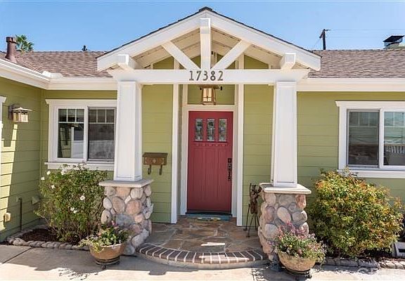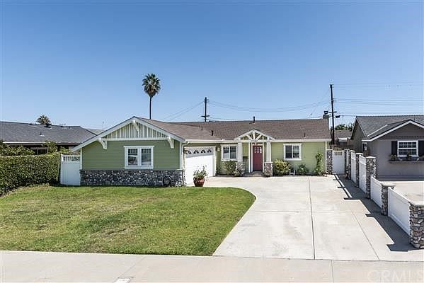 Gorgeous Huntington Beach home! 4 bedrooms, 1 3/4 bathroom Craftsman-style home with siding and stone accents. 1699 square feet of living space ~ Situated on a 6025 square foot lot. Front porch with stone accent pillars and slate porch. New slate entry flooring. Board and batten wainscoting in entry, living room and hallway. Beautifully remodeled kitchen with custom cabinets, pull-out drawers and glass door upper cabinets. Laguna blue glass tile backsplash, large island with deep drawers, pull-out trash and seating for 4 or 5 people. Under cabinet lighting, large farmhouse sink, porcelain slab counters and stainless steel appliances. New built-in microwave. Pantry and tons of storage! Spacious living room with wood-burning fireplace and gas starter. Custom mantel and built-in glass door cabinetry surround the fireplace. French pocket doors between the living and family rooms. Engineered hardwood floors throughout. Carpet in the bedrooms. The tile flooring in the bathrooms looks like wood. Ceiling fans throughout. Custom crown molding throughout. Family room with built-in bookcases, high ceilings, surround sound and upper sliders that allow the ocean breeze to flow though. Bedrooms with custom closet doors. Master bedroom with unique ceiling treatment, custom closet with mirrored wardrobe doors and private master bath. The master bath has a Craftsman-style barn door, tile floor, wainscot, shower with large shampoo niche and frameless glass door. Tile accent wall with shelves. Lovely custom vanity. Bedroom 2 has a queen size Murphy bed. The office/optional 4th bedroom has cabinets for plenty of storage, a large window and view of the patio. Main bathroom with double sink vanity, soaker tub, tile wainscot and custom tile accents around the shower and bathroom. Recessed lights and 2 lights over the sinks. Custom dual pane windows throughout. 2 car attached garage with sectional roll-up door & garage door opener. Laundry area in the garage. Craftsman style patio with stone pillars and pergola style roof. Vinyl fencing & gates with stone accents. Sprinklers in front and back yards on timers. Large driveway. Custom exterior lights and mailbox. Room for an RV or boat. Newer dimensional composition roof. Too many upgrades to list! Just minutes away from downtown. Enjoy Pacific City with all the amazing restaurants and shopping. You have to see this beautiful hot won't last!