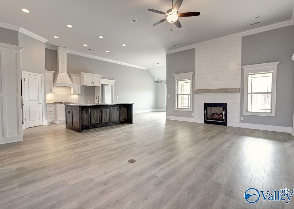 - Features: 12’ Ceiling, Ceiling Fan(s), Crown Molding, Fireplace, Recessed Lighting, Smooth Ceiling, Wood Floor