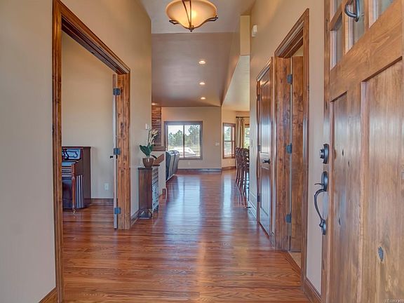 Gorgeous walk out ranch located on cul-de-sac in Walden Preserve close to elementary school, Open floor plan is perfect for entertaining, Main level office with closet could serve as a guest room as it is located conveniently across from a full bathroom. Gourmet kitchen is open to the great room & walks out to the maintenance free deck to enjoy the cool Colorado evenings. Walk out basement has three spacious bedrooms, a full bathroom, and large family room with second gas fireplace. Garage is fully finished & has workbench & plenty of room for storage. Located in wonderful Walden community with 4.6 miles of walking trails and two ponds for residents' use & easy access to Denver Tech Center by H83, Lewis Palmer District 38 schools, & peaceful setting yet still close to all Monument has to offer. Top quality construction built by Custom Castles.