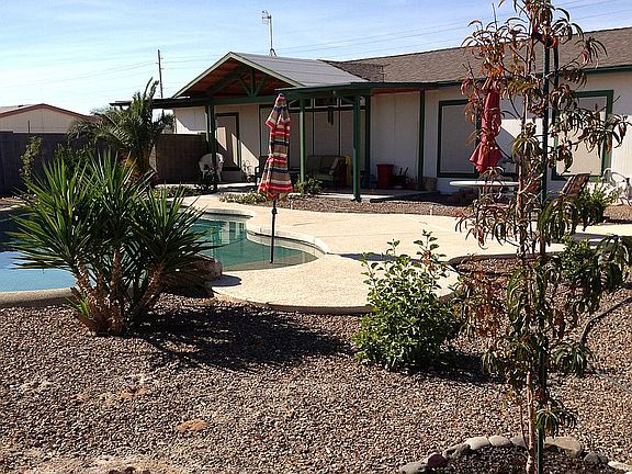 Beautiful home on One & 1/4 acres. Spacious kitchen with 16 cabinets; working island; eat in kitchen; new refrigerator,(2018), large walk in pantry, ceiling fans throughout with sunshades on all windows. Lots of upgrades. Window sunscreens to reduce summer temperature; Private Pebble Tec salt water swimming pool 7 foot deep/ New Heat pump installed 2017 ; sauna; fenced and landscaped back & front yards with drip system. Two patios; Side yard with pool barn,(shed) ;Family room with sliding glass doors; fireplace; vaulted ceilings throughout; living room; dining area; master bedroom with his & hers vanity/ separate water closet with walk-in shower; jacuzzi tub; large walk in closet & shelving. All bedrooms have walk in closets. Brand new Bosch Heat pump/ HVAC system 4/ 2023; Solar 2021 own - NO lease! New roof 2/2023/ water softener system- 2 tank in addition to Water filtration for drinking water in kitchen with 3 large filters, 5/2023; upgraded appliances in 2022 for kitchen stainless. 2 new sky lights with ultra violet protection so no need to cover them in the summer! Large RV garage with concrete patio Large 2 auto/ truck carport, circular driveway, Incredibly quiet, safe, family neighborhood, surrounded by beautiful desert scenery with view to superstition mountain and stately cacti. Minutes away from local Sunday worship,(whatever your denomination), shopping... and within driving distance to highway 10, RT 87.. 3 fenced in yards with pool shed... Wooden 60 foot boardwalk installed 2017 connecting pool yard to ex-large stand alone garage. DirectTv or Dish ready