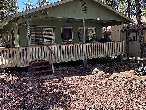 If you want the perfect retreat in the cool pines then you will love everything this home/cabin has to offer. It's in excellent condition, decorated wonderfully, and comes fully furnished.This cozy home also has a front covered porch with a BBQ grill, patio table and chairs, and a big side deck to sit, relax and enjoy the beautiful outdoors. There is plenty of room for parking, an easy to care for lot, and a nice big shed. House on large lot positioned nicely for one to easily add 2 more rooms with a Jack & Jill bathroom. Plenty of driveway for 5 wheel and side by sides. Inside newly remodeled appliances, granite ,cabinets, bathrooms and more.