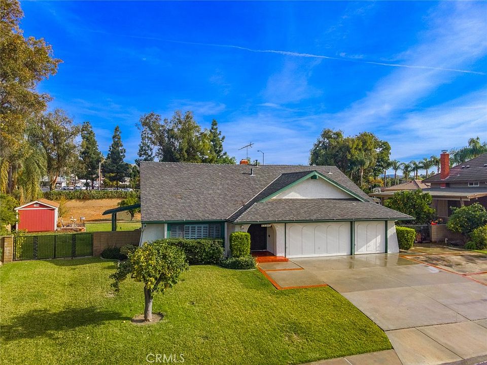 Welcome to your future home—a true gem nestled in one of Yorba Linda’s most sought-after neighborhoods! This spacious and versatile property offers everything a growing family could want and more. From its inviting open floor plan to the expansive grounds, this is where lifelong memories are made. Step into the bright, airy living space featuring vaulted ceilings and beautiful wood laminate flooring that adds warmth and style. The galley-style kitchen is a chef's dream, complete with a breakfast nook perfect for Sunday pancakes or quick snacks after school. The family room, with its cozy fireplace, is an ideal spot for movie nights or lazy afternoons. Need flexibility? This home has it! With 4 bedrooms (including one conveniently located downstairs), there’s room for everyone. Plus, a massive finished storage room offers endless possibilities—transform it into a home office, kids’ playroom, or your own creative retreat. Ceiling fans and recessed lighting throughout add comfort and charm, while the 3-car garage ensures space for vehicles, tools, and toys alike. Now, let’s talk about the crown jewel—your over half-acre lot. The huge covered patio is perfect for summer BBQs or cozying up with a cup of cocoa while gazing out over your private oasis, complete with 12 fruit trees. The grounds are a blank canvas waiting for your vision: a pool, sports court, garden, or even a guest house—the possibilities are endless! Located on a peaceful cul-de-sac, this home is steps away from Yorba Linda’s top-rated schools, scenic walking trails, and family-friendly parks. Foodies, rejoice! You’ll also find an array of fantastic dining spots just around the corner. If you’ve been dreaming of space to grow, play, and create, this is it. Don’t miss your chance to own a home that’s as full of potential as it is charm. Schedule your private tour today—your future starts here!