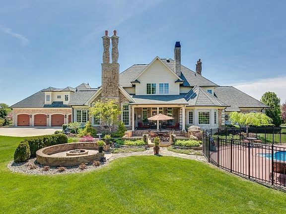 Shamrock Hills! With a stately presence, this incredible home sits majestically on a meticulously landscaped lot and inground pool. Extraordinary attention to exterior architectural detail, with its spiraling chimneys and detailed masonry, set the stage for the incredible interior. The foyer offers a commanding view of the home's light-filled, open and flowing floor plan. Built by Rans Custom Homes, no expense was spared in quality craftsmanship and detail. The home's large rooms, extraordinary hardwood flooring, and purposeful design combine perfectly with the tasteful neutral decor. Highlights include an impressive chef's kitchen open to the family room. The kitchen has dual islands, Ayr Custom Cabinetry, and a top of the line appliance. An incredible first floor primary suite with a fireplace, sitting area and a wall of windows overlooking the private rear yard, will be your exquisite escape. The primary bathroom features his and her water closets, dual vanities and dual walk in closets. The home boasts amazing detail at every turn with triple crown moldings, beautiful framing, and Ayr cabinetry throughout the home.The home offers 6 bedrooms with 5 ensuites; an amazing first floor library with coffered ceiling, and a spacious lower level complete with 10 foot ceilings and windows. Other amenities include a climate controlled wine room, a full wet bar perfect for entering, a generous television area, a billiard area and a full workout room complete with a sauna. The home features a generous entertaining area surrounding the inground pool, and an oversized private rear yard. Located in the area's premier gated community, Shamrock Hills, this home is minutes to shopping, restaurants, the hospital and Notre Dame, but feels like a world away.