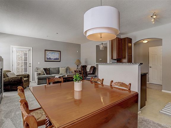Inviting and gorgeous condo in Prairie Walk. One of the larger and desirable floor plans offering two bedroom suites with walk-in closets and private patios. There is an open kitchen, dining and living area with new light fixtures, fresh paint and new carpet. Kitchen and bathrooms feature granite countertops. Enjoy relaxing by the fireplace or grilling year-round on the covered patio. Washer and dryer in-unit. Pool, hot tub, fitness center, neighborhood park with a playground and volleyball court are included in the HOA. Convenient location with easy access to the Cherry Creek Trails and E470, I25, shopping and restaurants. A place you will love to call home!