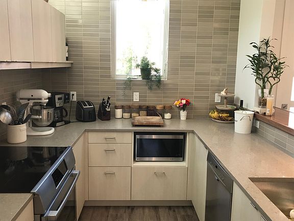 Near new house available May 1st. The two-story home has 3 bedrooms(upstairs) and two bathrooms(one up, one down). The first floor is an open floor plan with large patio doors leading from both the dining and living room to the backyard/patio with an irrigated, raised garden bed and detached storage shed. Fantastic daylight, quartz countertops, almost new appliances, and laundry. Hard surface floors on the main living level and hardwood floors going up the stairs and in the upstairs bedrooms. The upstairs bathroom has a custom tiled tub/shower and the lower level has a custom tiled shower. The home has a sleek, clean feel following a modern style. There is also one off-street parking space with EV charging outlet ready for your charger. A great deal of care was taken to make this house as energy efficient as possible. The house was built following Passivhaus principles (the most aggressive energy-efficiency certification) and has produced enough solar energy to power the home along with some to spare. (for an electric vehicle?) The location is perfect. A few blocks from the up and coming West Berkeley neighborhood with Cafe Leila, Casa Latina, La Marcha, Highwire Coffee Roasters, and a variety of other shops. The 4th street area is also a short walk as is the waterfront bike path. It's a 12-minute walk to BART and 1 block from the Transbay bus line (About 30 minutes to get to the Transbay Terminal in downtown SF). Please email me if you are interested in discussing the home further and scheduling a walk through. All electricity produced by solar system is included in rental price. Tenant is responsible for water and any electricity beyond what the solar system produces. Minimum credit score of 700 for each adult tenant and combined income of at least $189,000. Children are welcome and ONE PET will be considered on a case by case basis. Please email me if you are interested in discussing the home further and scheduling a walk through. There is no gas bill and solar system is designed to cover typical electricity use. Owner pays trash.