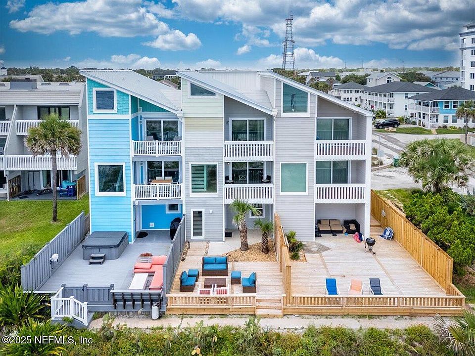 Experience the ultimate in beachfront living at this spectacular 3-bedroom, 3.5-bath residence perfectly positioned oceanfront in the heart of Jacksonville Beach. With Atlantic views from nearly every room, this home offers an unparalleled coastal lifestyle. The open-concept floorplan is designed for both entertaining and everyday living, featuring expansive living and dining areas that flow seamlessly-all backdropped by endless ocean vistas. Each bedroom is generously sized with its own en-suite bath, providing comfort and privacy for family and guests. The spacious primary suite is a true retreat with breathtaking water views. Enjoy morning sunrises and sea breezes from your private balconies and deck. just steps from the white sandy beach. Located walking/biking distance restaurants, shopping, and all the best of the Beaches lifestyle, this rare oceanfront gem blends elegance, comfort, and convenience in one perfect package. With no HOA or FEES this is truly one of a kind