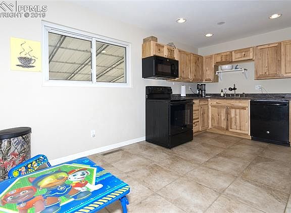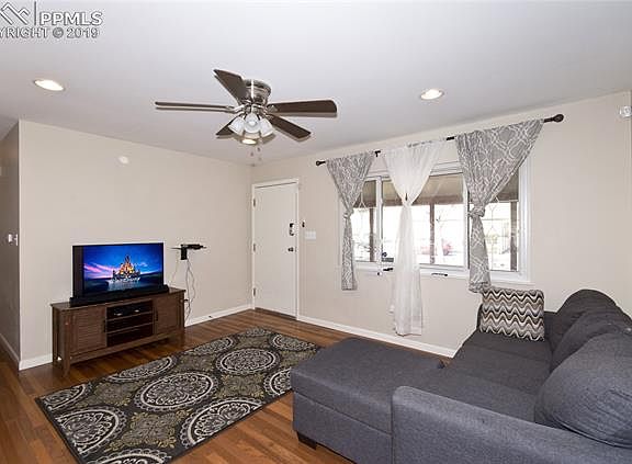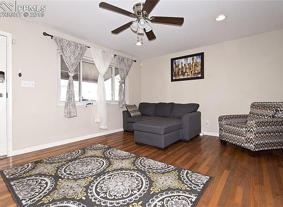 Updated main level living in this desirable 4 bedroom, 1 bath home with fenced yard and mountain views. The garage has been converted to finished area that can be used for the 4th bedroom, game room or home office. Remodeled kitchen with ceramic tile, newer appliances and dining area. Hardwood floors in main living area, brushed nickel lighting, fixtures and faucets, new furnace in 2018 with whole house humidifier. Additional poured concrete side driveway and extended back patio for entertaining. The outbuilding in the back yard is partially finished with heat and offers bonus space for storage or make your own unique "getaway". This home is conveniently located with easy access to shopping and entertainment. Close to Fort Carson as well as the Academy Blvd corridor and I-25.