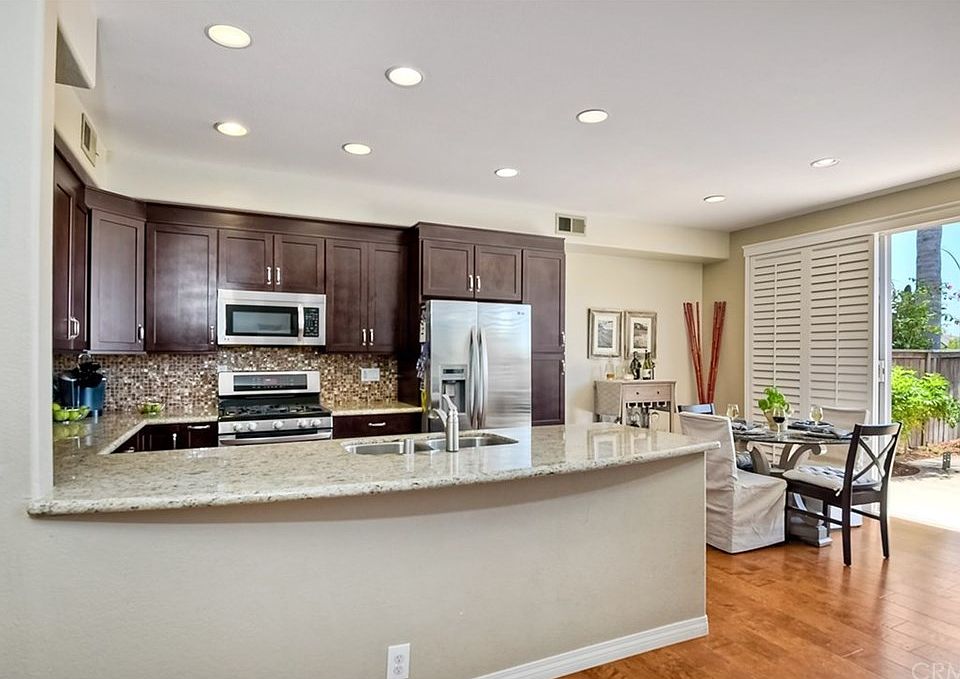 MOVE IN READY--STEPS TO THE POOL AND PARK--BEST SCHOOLS 2 bed plus loft, 3 bath home features an open floor plan with beautiful mid-tone hardwood floors and a remodeled kitchen with quality cabinetry, glass backsplash, granite countertops and stainless appliances. It leads to your newly landscaped yard with south/westerly views that provide beautiful sunset watching (and fireworks on the 4th!). You are perfectly situated within in this neighborhood-a couple of steps from the community pool/spa and club house and one block from the park where there is a ballpark, walking area, playground and BBQ area-fun for any age group. Best of all-this is a real old fashioned neighborhood...you will actually know your neighbors. All this and you are just a few miles from the beach...ahhh