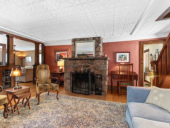 The Cardner House. This storybook 1840s Colonial rests on 25 serene acres featuring a constant brook & small waterfall, perennial gardens, hardwoods, walking trails, and abundant wildlife—ideal for hiking or hunting. As you approach the charming covered front porch, you can almost imagine someone handing you a glass of lemonade—it’s clear this is a home with a happy history. Nearly 50 years ago, the current owners fell in love with the property and lovingly undertook a years-long renovation, all while enjoying every inch of the land. Inside, you’re greeted by a stunning stone fireplace, original wood floors throughout, and a tin ceiling in the cozy living room. The home flows naturally from the living room into the family room, where built-in cabinetry and handsome oak pillars subtly define the space. Continue on to the generous dining room, then into the light-filled, front-to-back eat-in kitchen with beautiful views and direct access to the back deck and yard. At the rear of the home, a hallway leads to a powder room and a private studio/office featuring cathedral ceilings, a fireplace, and access to both front and back yards—ideal for creative work or quiet reflection. Upstairs, find two charming bedrooms (one with a fun sleeping loft), a full hall bath, and a spacious primary suite with cathedral ceiling, generous windows, and a beautifully updated bath with soaking tub and separate shower. Back downstairs, be sure to find time to relax or entertain on the large back deck where you can dine al fresco or nap to the soothing sounds of the waterfall. Across the quiet road, the 2-car garage includes a workshop and insulated second-story loft space with electrical and a Juliet balcony—perfect for finishing as a guest suite, studio, or retreat. Also, there is a road to access the acreage! Whether you’re looking for a year-round home or a weekend getaway, this peaceful retreat offers it all—just 6 miles to the Village of Cazenovia, 16 miles to I-81, and 30 miles to Syracuse and Hamilton.