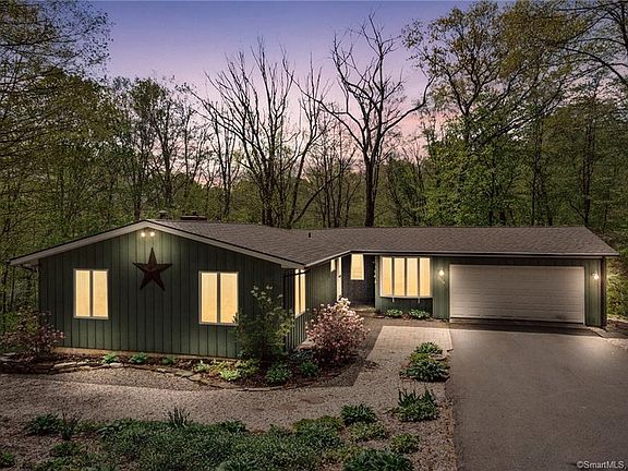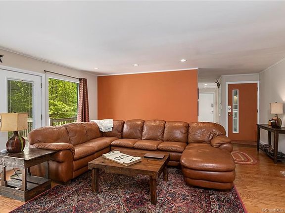 Delightful home in North Guilford has a great feeling of space and light. The kitchen and baths have been remodeled and all the windows are thermopane. The house has central Air conditioning ans Warm Air heat. The great room and kitchen open out to an over-sized deck that looks out oven the valley. The main floor of this ranch style home has two bedrooms and two baths. The master bedroom has a walk-in closet with W/D hook-ups, and a lovely master bathroom.the other bedroom has a large. walk-in closet and access to the remodeled hall bath. On the same level is an office that is accessed via the deck and the garage. The walk-out lower level has a large family room, mudroom, a second washer/dryer hook-up and an office (or third bedroom space) plus lots of dry storage. The attached garage is just off the kitchen and is one and a half bays. The garage door with automatic opener is new. The 1250 septic tank is new. There is real pride of ownership in this house. The landscape is fun and there is more development potential. The setting is great - enjoy the valley from the over-sized deck. Close to elementary school and the beach at Lake Quonnipaug. Nicely situated to give easy access to Guilford Center, Middletown, Hartford and New Haven.