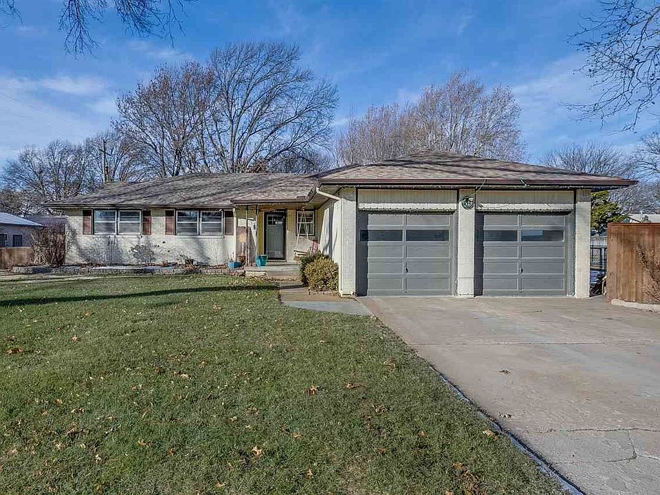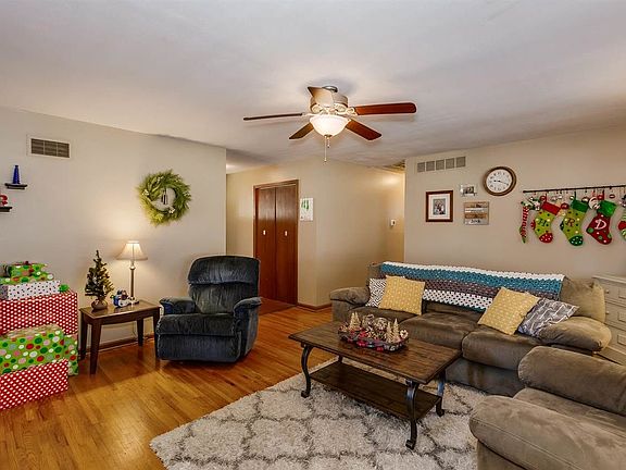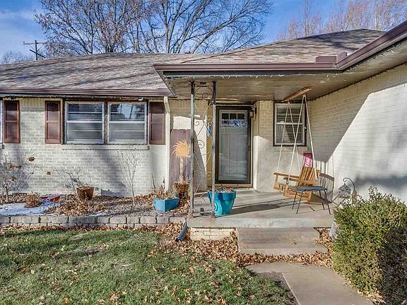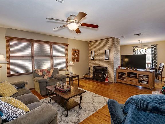 All Brick home in quiet area, West Lynn Addition. This ranch is move in ready! Covered porch to Front door shows the warmth this home provides. Remodeled kitchen with black and white check flooring! Plenty of cabinet space and a window above sink looking to front yard. Eating bar and beautiful shelving with plenty of counterspace. Main floor laundry, dining room and living room are all separated by beautiful brick fireplace. Wood flooring throughout main floor including all 3 bedrooms. 2 full baths on main floor. 1 of the bathrooms even has a built in vanity. Basement is newly carpeted and painted with family room and play room. Basement has a daylight window if buyer wants another bedroom and seller is finishing half bath in basement Backyard is fenced with the 3rd car garage and storage or workshop. Come see quickly.