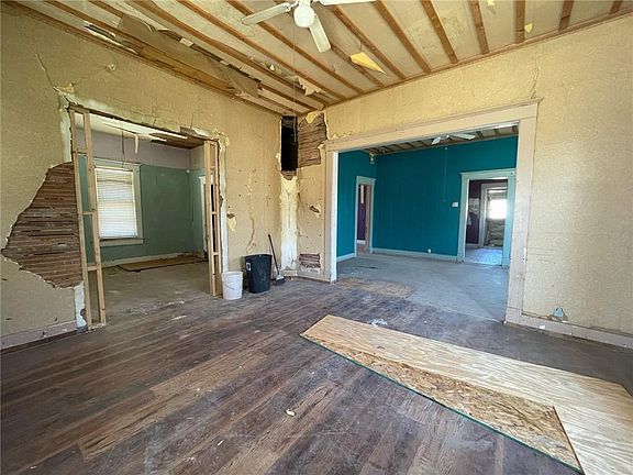 Home is being Sold As-Is. Roof is good, New power box, Foundation repaired, New porch, New garage pad, New entry door, Large lot, 1/2 block from historical homes without historical restrictions.