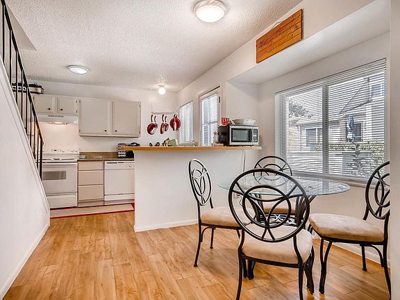 This is a charming townhouse. Centrally located and close to Kipling and Hampden. There are many amenities nearby to enjoy and close to the transportation of a bus. This home has a fireplace in the living room, newer laminate flooring, a spacious dining area, and a nice kitchen. The kitchen has newer appliances, granite counter tops, and newer flooring. On the main level is the laundry area with a washer and dryer. There's a main floor bathroom. The upper level has a full bath and two bedrooms with newer carpet. This property includes a concrete patio that can be enclosed. The exterior has mature landscape and is walking distance to Kendrick Lake. This is turn-key and maintenance free living.