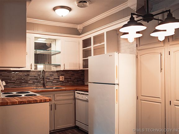 Prime Location! This 2-bedroom, 2-bathroom condo is ideally situated in the sought-after Maple Ridge area, just minutes from Cherry Street, Downtown Tulsa and Brookside. Featuring butcher block countertops and barn doors, it offers a stylish and modern interior. Additional amenities include gated access, an on-site laundry facility and a designated storage unit. The low monthly condo fee cover water, heating, cooling and electricity, ensuring added convenience. A reserved parking spot is included. Move-in ready and an excellent investment opportunity. Note: short-term rentals are not permitted per HOA regulations.