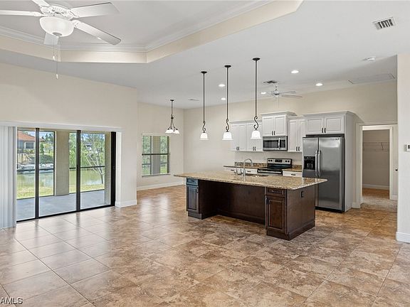 Beautiful Canal Front home in southwest Cape Coral! This four bedroom, two bath home is perfect for first time home buyers or your vacation property. Walk in to an open living, dining, and kitchen space overlooking your beautiful lanai and freshwater canal. This home features an owners suite plus three additional guest rooms and full bath for family and/or friends. Enjoy your screened in lanai and, complete with an outdoor kitchen and waterfront view, perfect for sitting and relaxing and enjoying everything the Florida lifestyle has to offer.