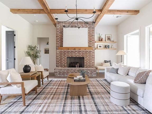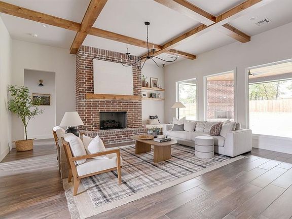 Perched gracefully on a half-acre lot, this captivating Modern Tudor exudes timeless charm. As you step into the home you are greeted by a spacious living room, a magnificent red brick fireplace commands attention, complemented by rich wooden beams adorning the ceiling that lend warmth and character. Large, inviting windows filter in an abundance of natural light, creating an inviting atmosphere. In the kitchen, the gas range is nestled beneath arched cabinetry, creating a stylish focal point. The large kitchen island seamlessly combines practicality and storage, making it a perfect spot for family to come together. Past the cozy study and living area, you’ll find two bedrooms that are generously sized and offer the convenience of an adjoining bathroom. The primary suite is filled with natural light and offers a private entry to the outside patio. The primary bathroom features elegant light tile and a deep soaking tub, evoking a spa-like atmosphere. An expansive master closet is conveniently located just off the laundry room, complete with stunning black and white checkered tile floors. Upstairs, you'll discover a sizable bedroom with a large closet and an en-suite bathroom. Step outside to your beautiful back porch, where you can unwind by the warmth of the fireplace. Savoring the vast backyard, you'll find ample space for relaxation and outdoor activities. Welcome Home!