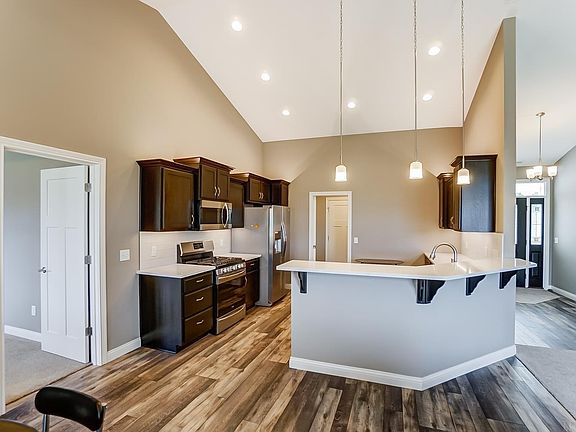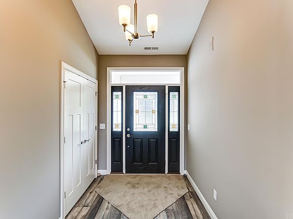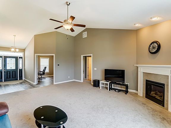 Waterfront pearl in the desirable Northwest Allen County School District! 1987SF/4BDR/2BA. This two year old Ranch opens with elegant foyer that leads into a Cathedral ceiling great room with wall of windows view. Split bedroom floor plan unifies the great room with dining area & stylish breakfast bar. Kitchen is designed with custom hickory cabinets, white quartz countertops, tile backsplash, and abundance of counter space. Master suite w Tray ceiling, large walk in closet, custom tile shower, separate tub, and dual sink vanities. There are 2 other generous sized bedrooms (14X13, 14X11) and a 4th Bdr/Den/Flex room. The second full bathroom includes dual sink vanities. 35 year architectural singles, foam insulated walls, luxury vinyl plank flooring, irrigation and sod in front yard, 3 car garage, 95% Lennox Furnace & A/C, 50 Gallon high efficiency water heater, water softener, large covered patio and additional patio overlooking the pond, refrigerator/washer/dryer remain.