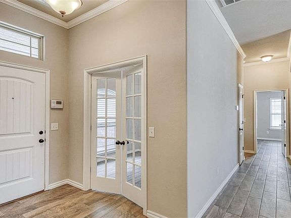 Home sweet home is calling your name with this new castle gem! Boasting 3 bedrooms, 2 bathrooms AND office; you notice its charm the minute you pull up to the curb. Beautiful flooring and neutral, contemporary colors greet you at the entry! Crown molding accents the living room with gorgeous fixtures and creates a cozy, modern feel throughout. The open concept is perfect for entertaining guests of all numbers! Stainless steel appliances sparkle off the granite counter tops and the white cabinetry provides ample storage in your well-laid out kitchen! The master suite is spacious, tile flooring, dual sinks and a tub large enough to soak all your troubles away~ Each bedroom is spacious & complete with its own closet. The overall floorplan of this home is versatile for an individual or a growing family. Go ahead and call over your friends for a BBQ and enjoy the spacious backyard! The highly desired 3 car garage is complete with a saferoom storm shelter that will bring you peace of mind!