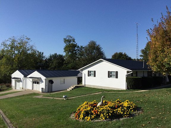 Just minutes from beautiful Seneca Lake Marina, is this 1990 (year round) quality built ranch home. With 2 bed, 2 full bath, large eat in kitchen, living room, utility room and spacious family room. New vinyl planking flooring is scheduled to be installed throughout and new black metal roofs on all structures. Sitting on 2 parcels, total .66 acres, this home has 2 single detached garages, one, set up for workshop, includes wood stove and wall AC, joined by an enclosed breezeway, (perfect for lawn equipment or wood storage) to other single car garage. Relax on a cozy covered patio for those free evenings. Propane gas heat/central AC, wood burner, county water and private approved septic. All appliances, (refrigerator, gas stove, upright freezer, washer/dryer and refrigerator in garage) are included. Property sits 1.2 miles from Seneca Marina and has winter views of lake. Well built single floor on slab, with nice yard and garden space available.